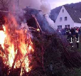 Letmathe. (kör) Auch in diesem Jahr waren die Osterfeuer überall in den Letmather Ortsteilen ein ungetrübtes Vergnügen. Das Wetter spielte trotz eher ungünstiger Prognosen am Samstag doch noch mit,und die Feuerwehr meldete keine unliebsamen Zwischenfälle rund um die lodernden Holzstöße. Dabei hatte man sich am Samstagvormittag auf der Feuerwache noch durchaus auf einen "lebhaften" Dienst am Abend eingestellt, denn die Wetterfrösche hatten heftigen Wind vorausgesagt. "Bei der herrschenden Trockenheitüberall könnte das Arbeit geben", so ein Feuerwehrmann noch am Mittag. Aber dann blieb der befürchtete Wind zum Glück aus. Und während es in Nachbarstädten zum Teil derbe schüttete, fielen in Letmathe nur ein paar vereinzelte Tropfen.Weit kräftiger strömte da schon der Gerstensaft anso manchem Feuerplatz. Die Partys anläßlich des alten Brauchtums werden von immer mehr Menschen besucht. Und das Feuer selbst ist längst nicht mehr die einzige Attraktion: ein breites Angebot an Speisen und Getränken und Spiel und Spaß für die Kinder machen die Sacherund. Ob in Dröschedebei der Borussia, beim TV Eiche, beim ASSV im Waldstadionoder den Hubertusschützen, der Letmather Löschgruppe und der Insel-Nachbarschaft - um nur einige zu nennen- überall war die Stimmung prächtig.