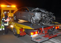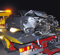 Nach Augenzeugenberichten ist es ein Wunder, dass der Toyota-Fahrer bei dem spektakulären Unfall nur leicht verletzt wurde. Der Wagen war völlig demoliert und fast wäre noch der komplette Motorblock abgerissen.