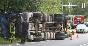 In Kurve verrutschte Ladung wurde zum Verhängnis - Umgestürzter Lkw auf dem Autobahnzubringer