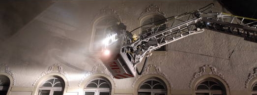 Zunächst ging die Menschenrettung vor: „Beim Eintreffen wurde uns von einem Anwohner gesagt, dass alle Bewohner in Sicherheit wären, bis auf die eine Person am Fenster im 2. Obergeschoss“, berichtete Detlef Rutsch. Nachdem der junge Mann heruntergeholt worden war, waren die Feuerwehrleute gerade wieder dabei, mit der Drehleiter nach oben zu fahren, um den Brandherd zu lokalisieren und mit dem Löschen zu beginnen, als ein weiterer Notruf auf der Feuerwache einging: „Der Anrufer sagte, dass noch jemand auf dem Dach des Hauses ist.“ Wo sich der Augenzeuge befand, blieb unklar: „Denn zumindest von unten war durch den dichten Qualm zunächst nichts erkennbar.“ Erst als sich der Mann aus einem Dachfenster noch weiter hinaus ein wenig in Richtung seiner Retter im Korb der Drehleiter, die ihn bereits ausgemacht hatten, bewegte, war er auch für die Hilfskräfte am Boden zu sehen.