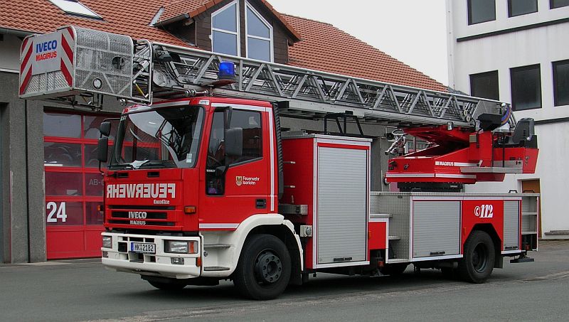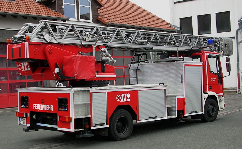 Seit wenigen Tagen befindet sich nun auch die neue Drehleiter im Gerätehaus am Lennedamm und löst somit das Vorgängerfahrzeug, welches seit 2002 bei der Löschgruppe Letmathe in Dienst stand ab. Bei der "neuen" Drehleiter handelt es sich, wie auch beim Löschfahrzeug um ein ehemaliges Einsatzfahrzeug aus den Beständen der Berufsfeuerwehr.