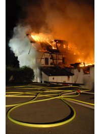 In der Nacht hatte vor allem die Versorgung mit Löschwasser für Probleme gesorgt: Zwar befindet sich ein Hydrant unmittelbar hinter dem Waldhaus, doch dessen Dimension reichte gerade aus, um mit einem einzigen C-Rohr gegen die Flammen vorzugehen.