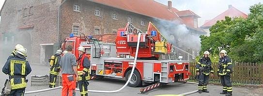 Brennende Räume in der Nähe des Heubodens: Dramatische Szenen spielten sich am Mittwoch auf dem Hof Schulte-Kalthof ab. Zum Glück wurde niemand verletzt. Am Ende lief alles relativ glimplich ab.