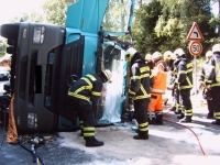 Der LKW-Fahrer wurde durch den Unfall eingeklemmt. Er konnte aber bereits von der Feuerwehr befreit werden. Der Fahrer ist nach Angaben der Iserlohner Feuerwehr schwer verletzt und musste mit einem Hubschrauber in eine Spezialklinik nach Dortmund geflogen werden. Der LKW hatte Kies geladen, der jetzt nach Angaben der Feuerwehr auf der ganzen Fahrbahn verteilt liegt. Die Aufräumarbeiten werden daher wohl mehrere Stunden dauern. Die Polizei rät deshalb allen Autofahrer aus Letmathe oder aus Ergste den Schälk weiträumig zu umfahren.