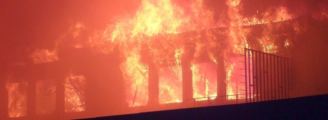 Verhindern konnten aber auch die fast 100 Einsatzkräfte nicht, was sich etwa eine Dreiviertelstunde nach ihrem Eintreffen ereignete: Durch eine so genannte Durchzündung platzte das Dach regelrecht auf und die Flammen schlugen aus dem zweigeschossigen Gebäude heraus und das schließlich auf einer Fläche von rund 800 Quadratmetern. „Das ist die unvermeidbare Folge, wenn man das Feuer nicht von innen und auch von außen nicht effektiv bekämpfen kann, und das war hier leider der Fall, da es sich um eine Doppelkonstruktion handelte, bei der auf das alte Dach ein neues aufgesetzt worden war“, erläuterte Einsatzleiter Jörg Schäfer.