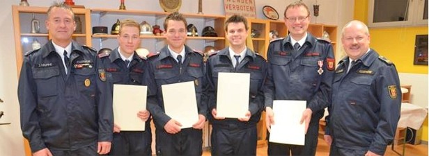 Die Löschgruppe besteht derzeit aus 23 Aktiven. Feuerwehrchef Christian Eichhorn dankte allen für ihren Einsatz. Er beförderte Max Nestler zum Feuerwehrmann sowie Dominik Köper und Sascha Echtermann zum Unterbrandmeister. Thorsten Denz erhielt für 25 Jahre Feuerwehrdienst das Silberne Ehrenzeichen.
