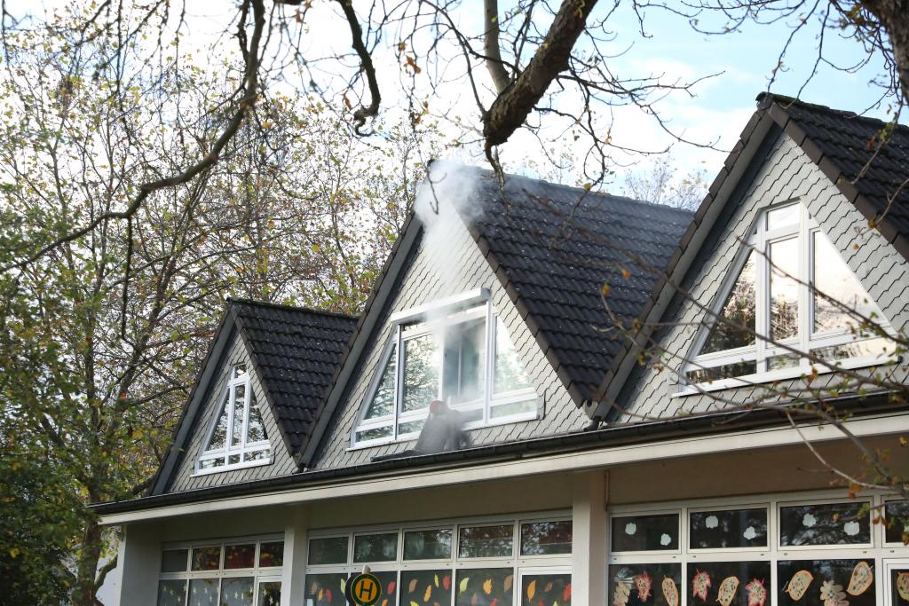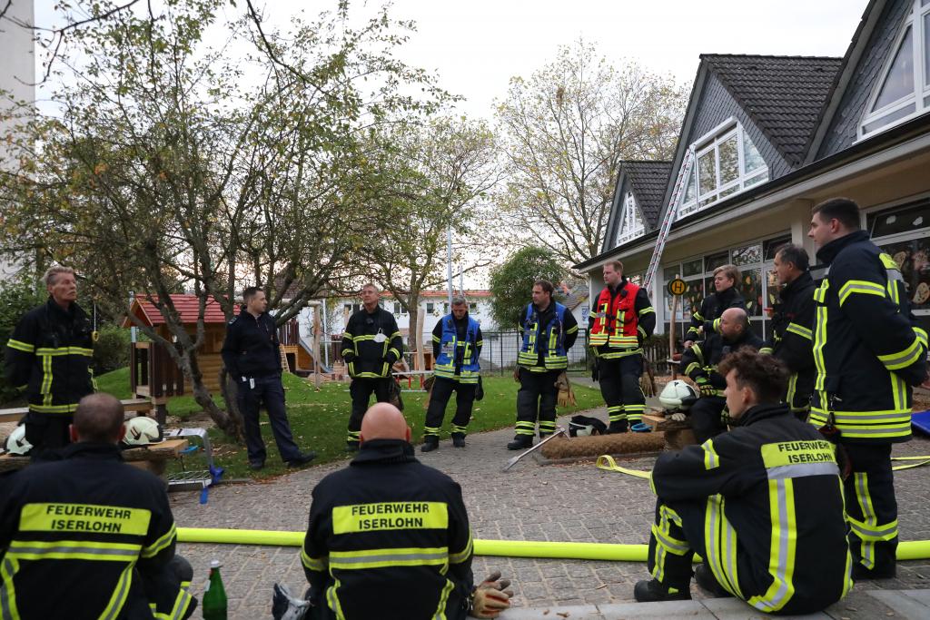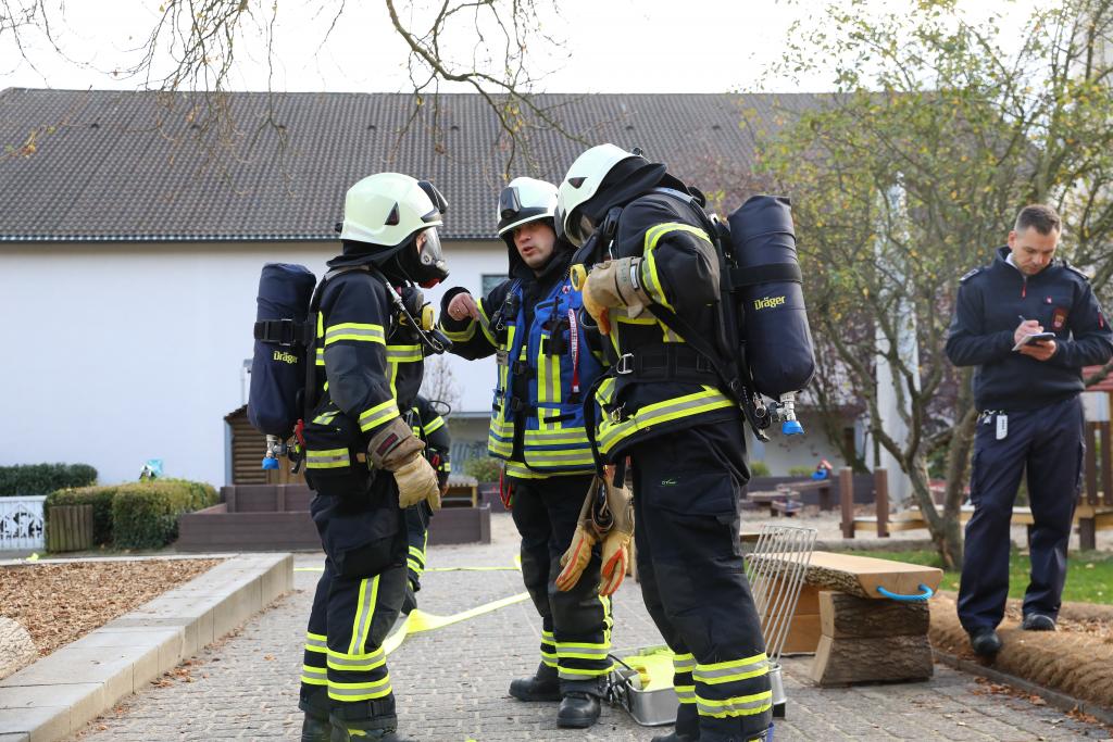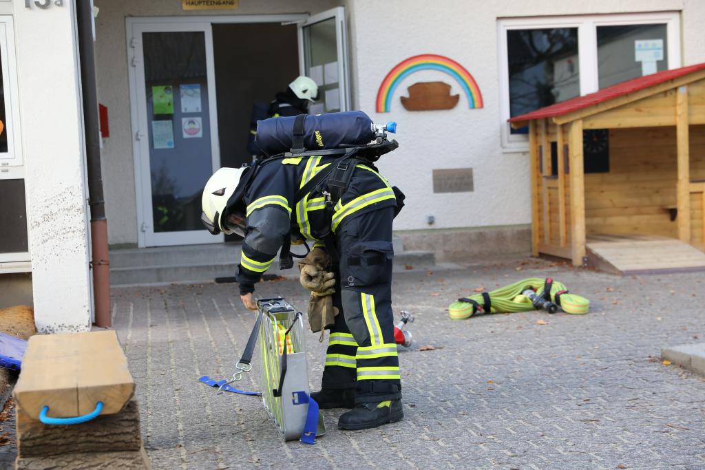 In einem Kindergarten war es zu einem Brand in der Küche gekommen. Eine Person, so war die ursprüngliche Meldung vor Übungsbeginn, galt als vermisst.