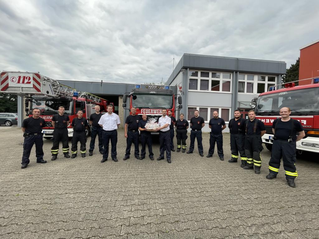 Etwas zu Feiern gab es beim letzten Übungsdienst. Der Unterbrandmeister Thomas Stavrakis feierte Anfang des Monats seinen 50. Geburtstag. Stellvertretend für die Löschgruppe überreichte die Löschgruppenführung einen Geschenkkorb voll gepackt mit griechischen Leckereien von EDEKA Nowak!