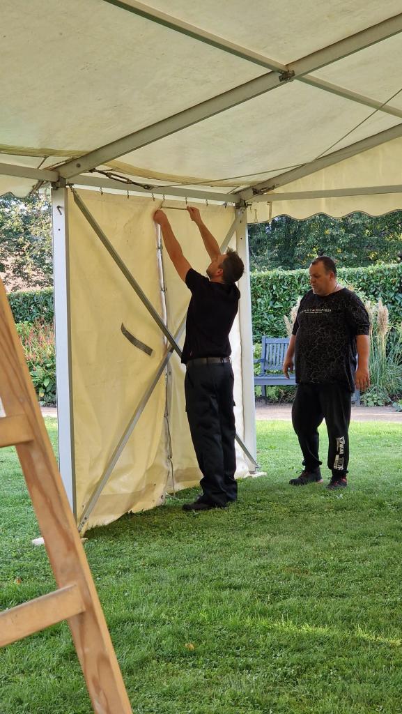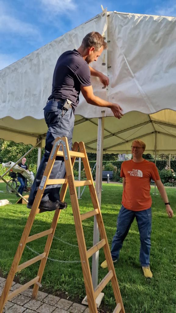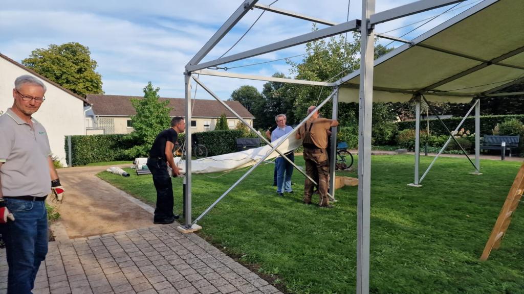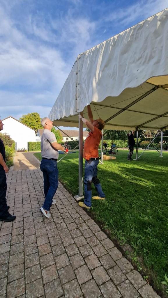 Gemeinsam bauten wir gestern dann das Zelt für das Jubiläum am Freitag auf.