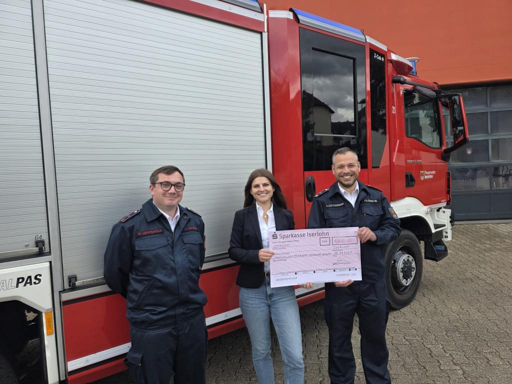 Am 16.09.2025 nahmen Löschgruppenführer Brandinspektor Sascha Echtermann und sein Stellvertreter, Brandmeister Mirko Lechtenfeld, eine Spende der Wohnungsgenossenschaft Letmathe-Oestrich eG in Höhe von 1.000 Euro entgegen. Überreicht wurde der Spendencheck von Michelle Viebahn, Mitarbeiterin im Bereich Vermietung und Marketing bei der WoGe.