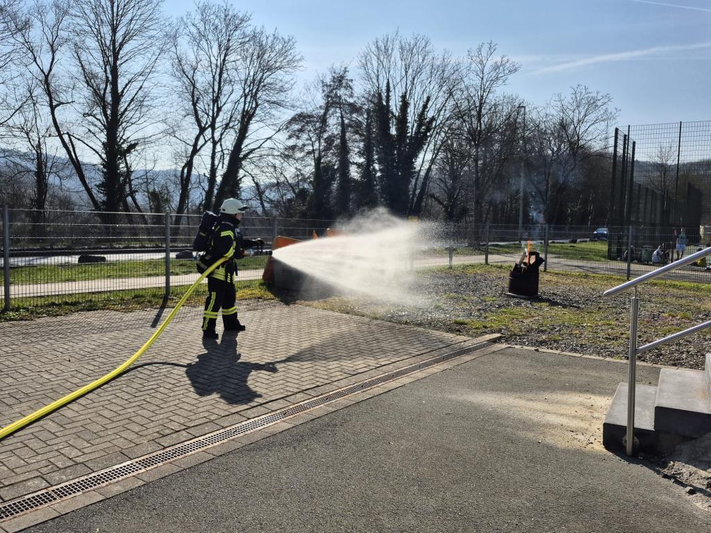 Dort durfte er gleich sein erstes Feuer löschen - der perfekte Start seiner aktiven Zeit!