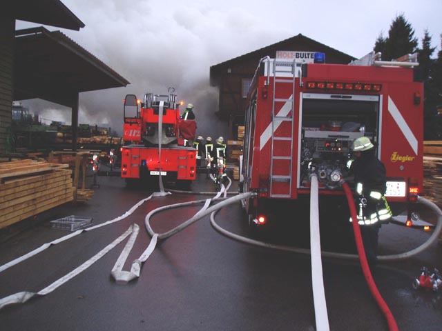 Brennt Sägewerk in voller Ausdehnung. LF 16 BF und DLK Letmathe wurden aus dem Einsatz Bleichstr ausgelöst. LG Sümmern rückte von Wache BF an.Die LG Hennen hatte schon erste Maßnahmen ergriffen. Der Werfer vom TLF 24/50 wurde eingesetzt. Die DLK Letmathe ging mit Wenderohr im höhe des Wohnhauses in Bereitstellung. Insgesammt wurden 8 C Rohre eingesetzt. Zum Schluß wurde der Spänebunker noch ausgeräumt und die Glutnester abgelöscht.Die Einsatzkräfte wurden vom DRK im Gerätehaus Hennen mit Essen und Getränken versorgt.
