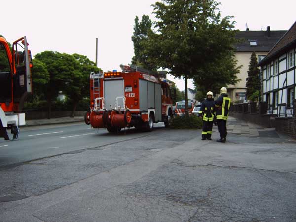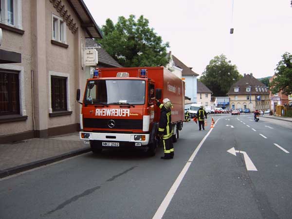 Gemeldeter Gasgeruch im 2 OG, Straße abgesperrt, ein Trupp unter PA(BF) mit Exmeßgerät vor. Die LG 21 stellte den Sicherheitstrupp. Stadtwerke vor Ort,es konnte kein Gas nachgewiesen werden.