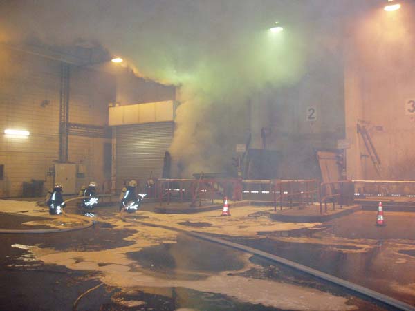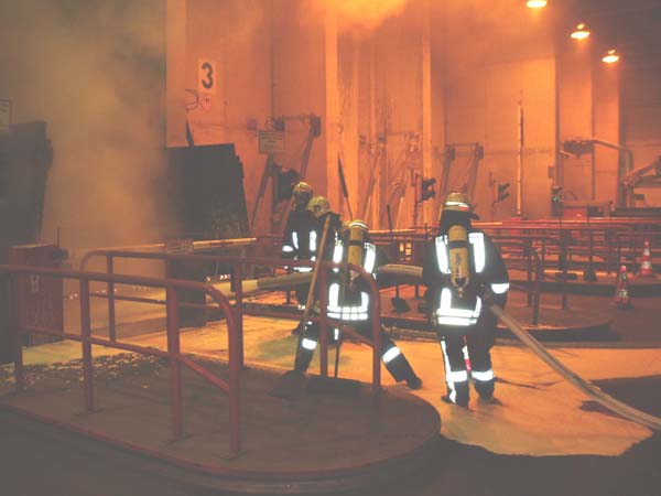 Das Feuer war im Bereich von 2 Einschüttluken ausgebrochen. Unter PA wurden 2 S8-Schwerschaumrohre und ein B-Rohr eingesetzt. Es waren mehrere Verpuffungen aus dem Müllbunker zu hören. Das Schaummittel wurde vom AB Sonderlösch entnommen. Die DLK Besatzung unterstütze den Aufbau der Leitungen. Anschließend besetzte die DLK Letmathe mit der LG 11(Stadtmitte) die Feuerwache BF.