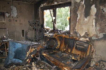 Gemeldet wurde eine Feuer in einer Wohnung Am Steinhügel 65. Bereits während der Anfahrt der BF zum Einsatzort ware eine Rauchsäule über dem Hochhaus zu erkennen und die Alarmstufe wurde auf Feuer 2 erhöht. Es stand im 3. OG eine Wohnung in Folge eines implodierten Fernsehers bereits in Vollbrand.