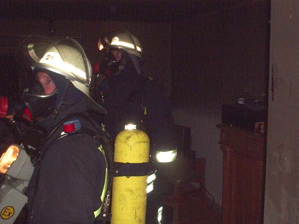 Ein weiterer Trupp ging mit Filtergeräten vor und zog die Dämmwatte auseinander. Diese wurde dann nach Draußen geschafft und dort abgelöscht.