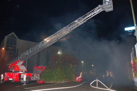 Ein direkter Löschangriff war von dieser Stelle aus nicht möglich, da das eigentlich betroffene Gebäude nicht in entsprechender Reichweite lag.