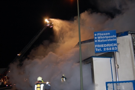 Gemeldet wurde ein Brand in dem Geschäft von Fliesen Friedrich. Beim Eintreffen der BF stand das Gebäude bereits in Vollbrand.