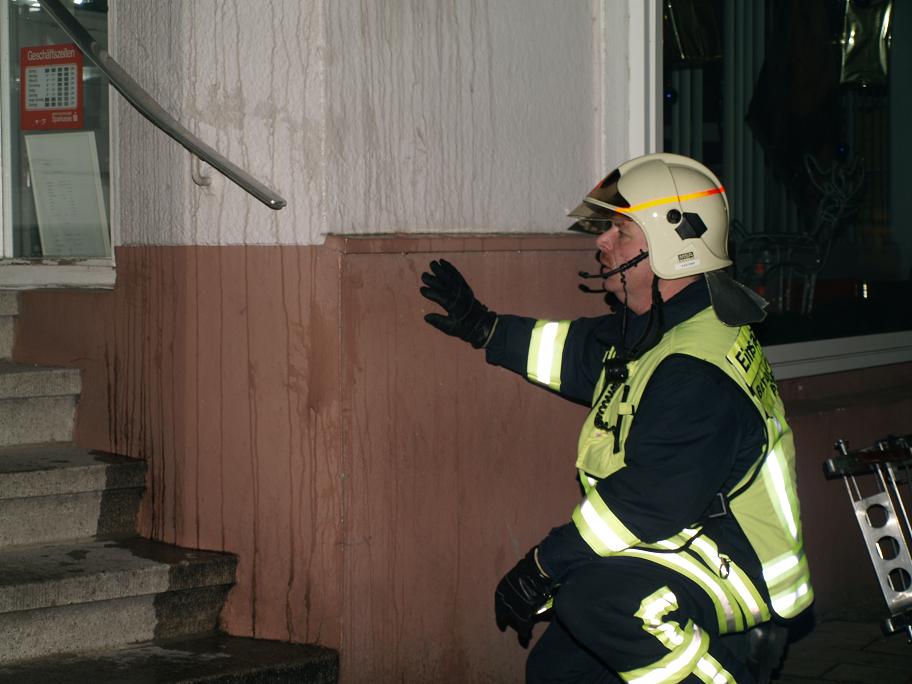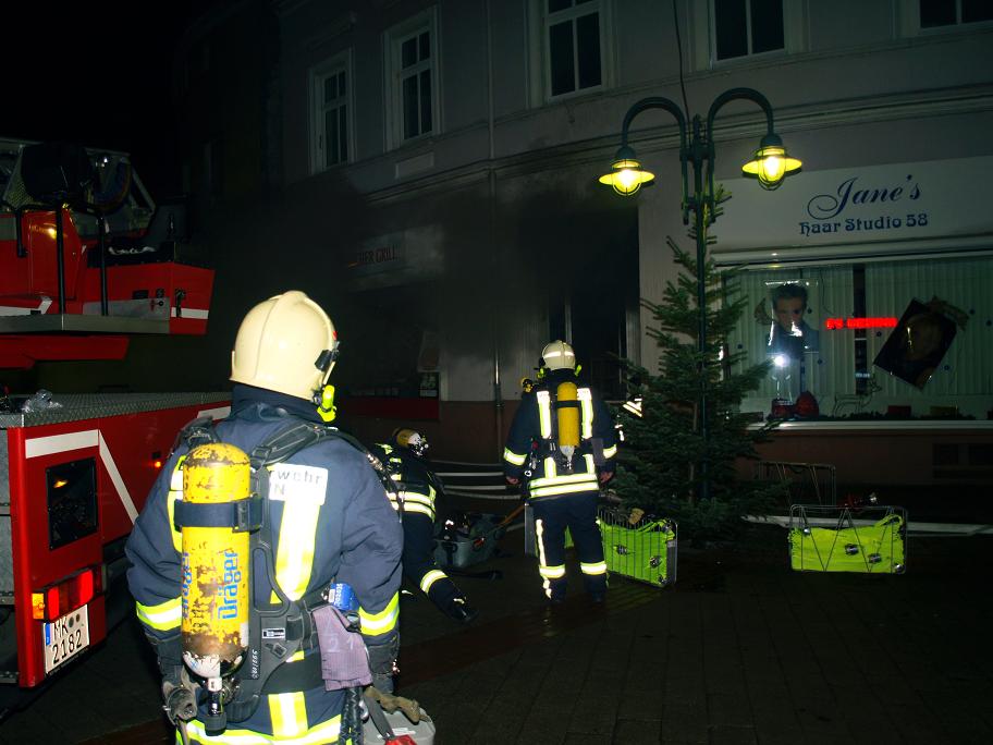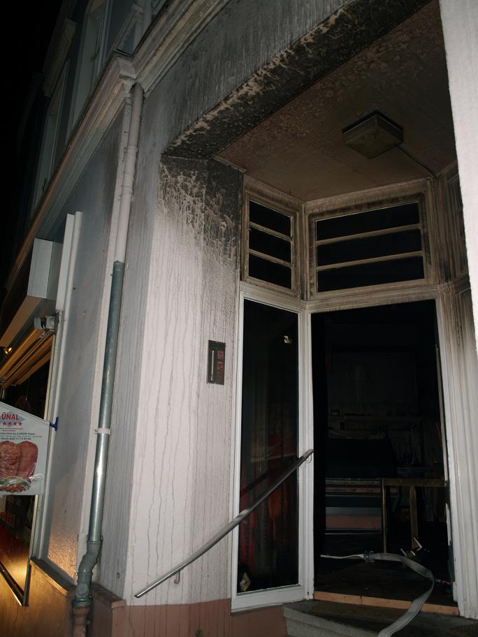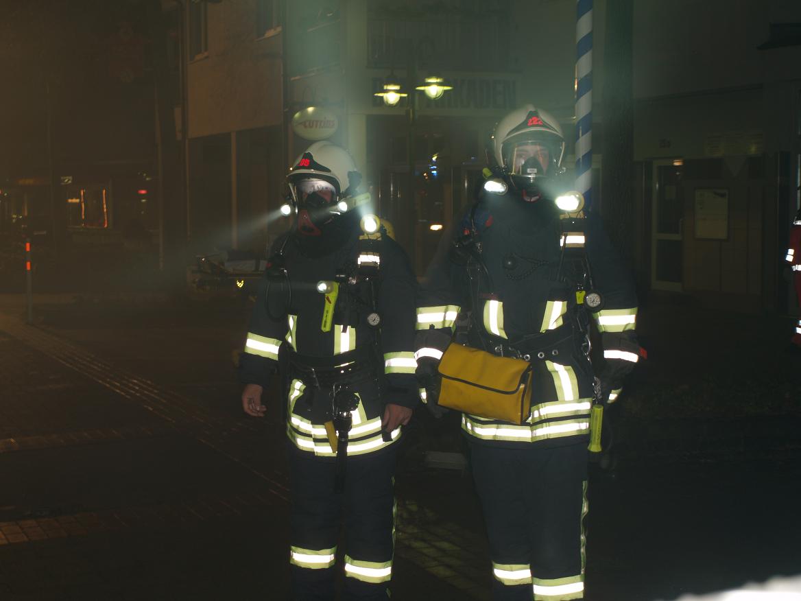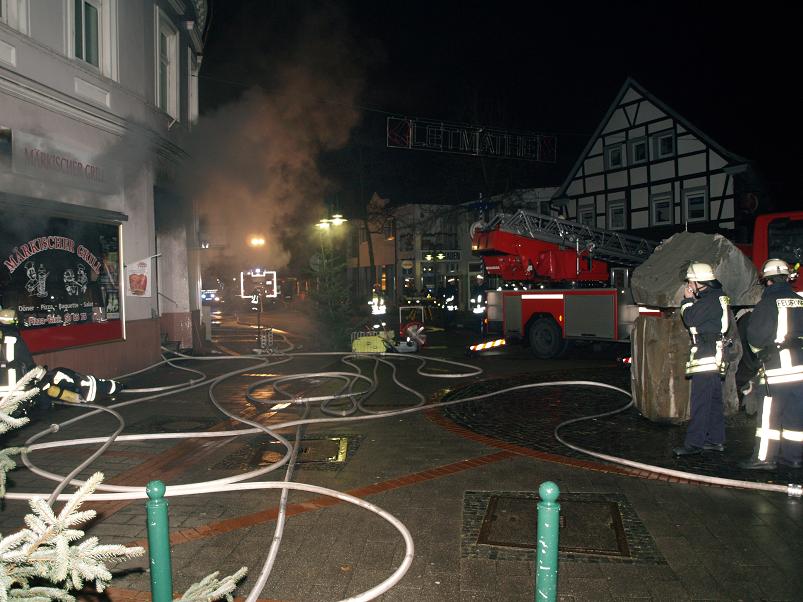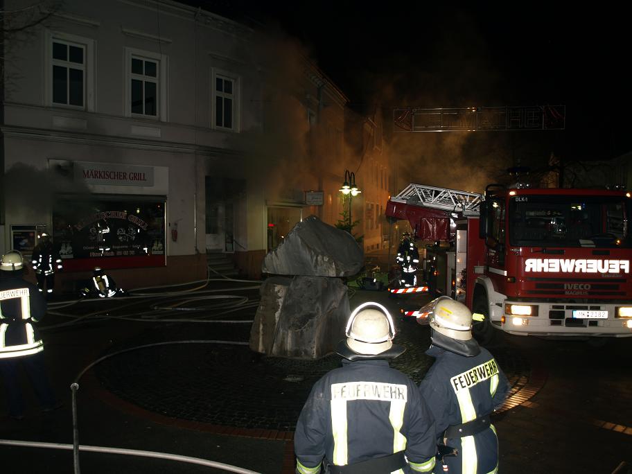 Angefahren wurde über Schwerter Straße. Beim Eintreffen an der Einsatzstelle schlugen bereits Flammen aus einem Kellerfenster, Personen waren vermutlich nicht mehr im Gebäude. der erste Trupp der LG21 unter PA mit C-Rohr öffnete die Tür zum Lokal und ging zum Innenangriff. Ein weiterer Trupp bekämpfte den Brand von außen durch ein Kellerfenster. Das Gebäude wurde kontrolliert und ein zweiter Zugang auf der Rückseite ausgemacht. Die Tür wurde gewaltsam geöffnet. Ein dritter Trupp der LG Letmathe ging von dort zur Brandbekämpfung unterstützt von einem Trupp der Berufsfeuerwehr in den Keller vor. Die LG Stübbeken stellte den Rettungstrupp und brachte eine Person aus der obersten Etage mit einer Fluchthaube ins Freie und übergab sie dem Rettungsdienst. Es wurden 2 Überdrucklüfter im vorderen Eingangsbereich und am hinteren Eingang eingesetzt, um den Keller rauchfrei zu machen. Das Gebäude wurde vollständig kontrolliert und gelüftet. Die Glutnester wurden von den Trupps abgelöscht. Zwischenzeitlich wurde die LG Oestrich alarmiert, die aber in Bereitschaft bleiben konnte. Die Einsatzstelle wurde an den LZ3 übergeben. Die LG Stübbeken stellte bis ca. 8:30 Uhr eine Brandwache.