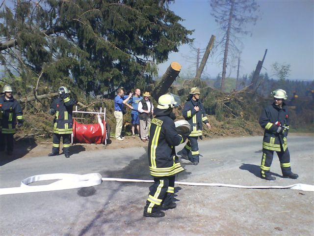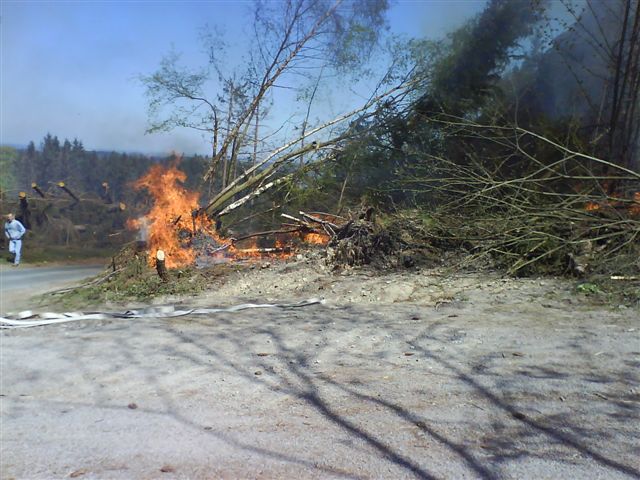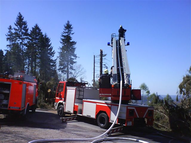 Gemeldet wurde ein Waldbrand in höhe Honselweg 6. Bei eintreffen brannte ein Waldstück von ca. 200 qm.Sofort wurden über das TLF 24/50, dem LF 16 BF und dem LF 16 Letmathe ein Löschangriff mit mehreren C -Rohren aufgebaut. Bedingt durch die Thermik des Feuers wurden Funken in den Waldhang unterhalb der Strasse geweht. Es entwickelten sich dort dann mehrere Entstehungsbrände. Es wurde auf Feuer 2 ( Zugalarm ) erhöht. Zusätzlich die LG 23 und das TLF 16 Sümmern. Die LG 25 u. LG 23 bauten von einem Waldweg unterhalb der Brandstelle einen Löschangriff auf. Sie wurden von dem TLF 16BF u. TLF 16 LG 31 mit Löschwasser im Pendelverkehr versorgt.Die BF Hagen versorgte die BF u. die LG 21 mit Löschwasser. Bedingt durch den Sturm übereinander liegender Bäume wurde über die DLK BF ein Wenderohr vorgenommen um die Brandausweitung einzudämmen. Insgesamt waren 9 C Rohre und ein Wenderohr im Einsatz. Die LG 21 und LG 25 verblieben nach dem das Feuer abgelöscht war zur Brandwache an der Einsatzstelle. Nach dem noch mehrere Brandnester abgelöscht worden sind konnte von der Einsatzstelle abgerückt werden.Die DLK Letmathe besetzte die Wache der BF mit der LG 11.