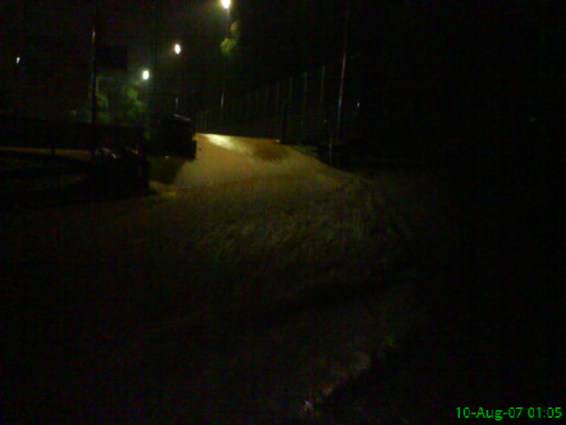 Bei Eintreffen wurde folgende Lage festgestellt. Die LG Hennen war im Bereich Lasbeckerweg 1 -8 vor Ort. Das Wasser floss hier in einer Höhe von ca. 30 cm und Breite von 4 Meter in einem reißendem Strom über die Straße in die Häuser die unterhalb des Straßenverlauf lagen. Die LG Letmathe fuhr zur Einsatzadresse Nr. 11. Dort stand ca. 3 cm Wasser im Keller das auf der Rückwärtigen Seite auch wieder abfloss. Ein darunterliegender Keller mit Heizöltank wurde kontrolliert, er stand sicher und fast trocken. Vom Bewohner des Hauses Nr. 17 wurde Wasser in der Kellerwohnung mündlich gemeldet. Dort stand das Wasser ca. 10 cm hoch. Hier wurde die Tauchpumpe eingesetzt und versucht das Wasser abzupumpen. Einige Anwohner hatten selbst Pumpen im Einsatz.Die weitere Erkundung ergab das sich das Schutzgitter vom Lasbecker Bach verstopft hatte. Dadurch ergoss sich ein gewaltiger Strom über den gesamten Sportplatz der sich dann teils in den engen Lasbeckerweg zwängte.Versuche das Gitter mit Einreißhaken frei zu bekommen wurden abgebrochen,da die Gefahr zu groß war,das Einsatzkräfte mit dem Wasser mitgerissen werden könnte. Es wurde dann ein Bagger angefordert. Der LKW des Baubetriebshof mit Bagger versuchte dann den Einlauf des Baches anzufahren. Vom unteren Weg aus war ein anfahren nicht möglich da er unterspült war. Dadurch wurde versucht vom Steinbruch aus anzufahren,dafür musste erst das Schloß am Tor mittels Bolzenschneider geknackt werden. Auch hier war dann ein Zugang nicht möglich, weil auch dort der Weg unterspült war. Im unteren Bereich des Lasbeckerweg traf dann noch die LG Bremke ein.Mit Absprache der Gruppenführer Hennen und Bremke wurde den Anwohnern im unteren Teil des Lasbeckerweges erklärt das dort ein abpumpen der Wassermassen nicht möglich sei solange der Bacheinlauf noch verstopft sei.Einige Anwohner waren daraufhin verständlicher Weise sehr verärgert. Die LG Bremke und LG Hennen meldeten sich dann für andere Einsätze frei. Mit Absprache der Polizei sperrte die LG Letmathe dann den Straßenverlauf des Lasbeckerweges ab. Der Bagger des Baubetriebshof sollte dann noch über den Sportplatz aus versuchen den Einlauf frei zu bekommen und bei Erfolg das an die Feuerwehr weiter zu melden damit die Einsatzstelle wieder angefahren wird. Die LG Letmathe rückte dann von der Einsatzstelle ab.