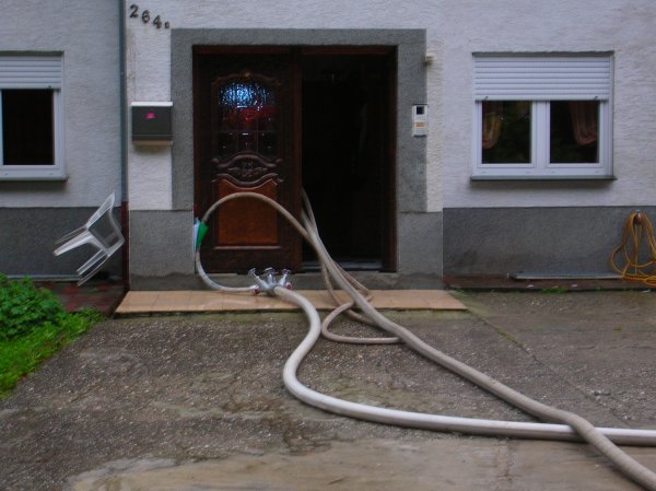 Im Keller des Hauses standen etwa 10 bis 15 cm Wasser. Mit der Wasserstrahlpumpe wurde das Wasser abgepumpt.