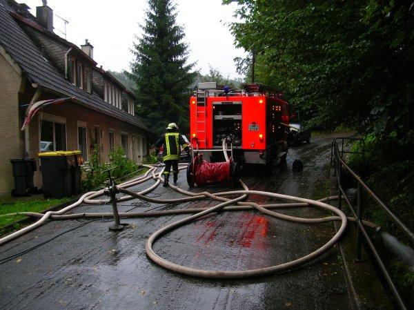 Im Keller des Hauses standen etwa 40 cm Wasser. Mit einer Tauch- und zwei Wasserstrahlpumpen wurde das Wasser so weit möglich abgepumpt. Über drei Bodenabläufe drang ständig weiter Wasser ein. Um 09:55 wurde die Einsatzstelle an die LG Stübbeken übergeben.
