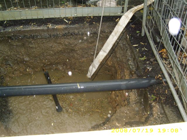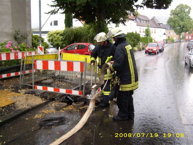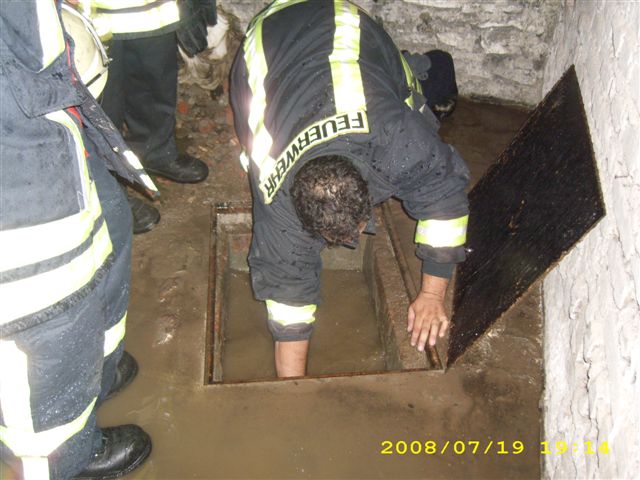 Auf Grund der starken Niederschläge am frühen Samstagabend lief an der Friedhofstraße eine Baugrube voll Wasser. Das Wasser drückte durch die freigelegten Versorgungsanschlüsse in den Keller eines Wohnhauses und überflutete diesen. Hierzu wurde die Löschgruppe Letmathe alarmiert und rückte mit dem Löschgruppenfahrzeug aus. Vor Ort wurde die Baugrube mit einer Tauchpumpe ausgepumpt und die restlichen Wassermengen aus dem Keller einem Abfluß zugeführt.