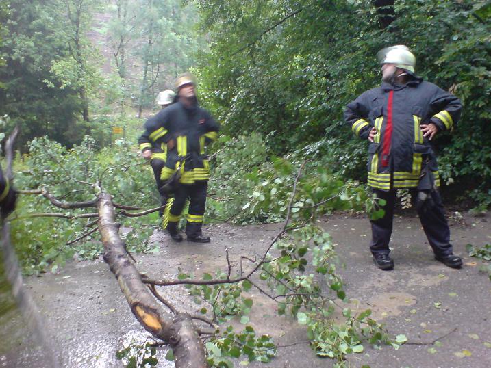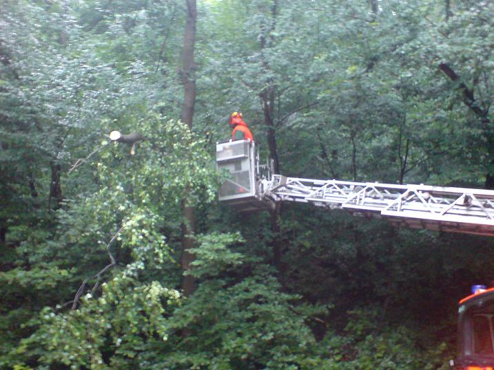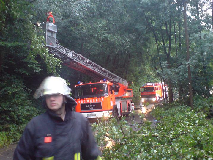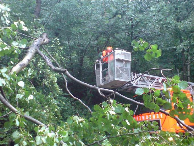 Am Lasbeckerweg war aus einem Hang ein Baum umgestürzt . Die Löschgruppe Letmathe rückte mit LF 16 und DLK zur Einsatzstelle an.Der Baum hing quer über der Fahrbahn in einer Astgabel von einem anderen Baum fest. Die DLK Letmathe wurde in Stellung gebracht und der Baum wurde dann aus dem Korb heraus an der Astgabel mittels Motorkettensäge abgesägt . Anschließend wurde der Baum zerkleinert und die Straße gesäubert.