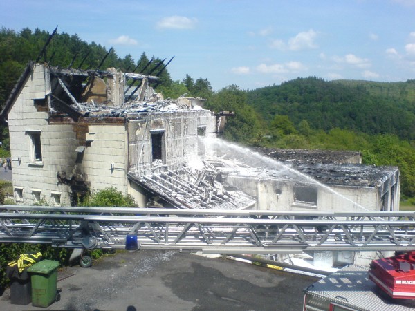 Der Zug 3 wurde alarmiert, um die beim Brand des Waldhauses am Franzosenhohl eingesetzten Kräfte abzulösen und die Brandwache zu übernehmen. Aufgrund der knappen Löschwasserversorgung wurde das TLF 24/50 der Berufsfeuerwehr als Puffer in den Einsatz mit eingebunden und von uns besetzt. Mit zwei C-Rohren, davon eines über die Drehleiter, wurden Nachlöscharbeiten durchgeführt.