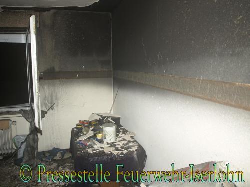Zu einem Zimmerbrand wurde die Löschgruppe Letmathe und der Löschzug der Berufsfeuerwehr alarmiert. Im Erdgeschoss eines Vierfamilienhauses hatte ein Rauchmelder Alarm geschlagen. Die Mitbewohner konnten bereits eine Rauchentwicklung aus der Wohnung wahrnehmen. Ob sich noch Personen in der Wohnung befanden, war nicht bekannt. Die Wohnungstür musste gewaltsam geöffnet werden. Zwei Trupps (BF /LG 21) unter Atemschutz drangen mit einem C-Rohr in die Wohnung ein. Die Küche stand in Flammen,das Feuer konnte schnell gelöscht werden. Personen waren nicht in der Wohnung. Mittels Überdrucklüfter wurde die Wohnung vom Rauch befreit.