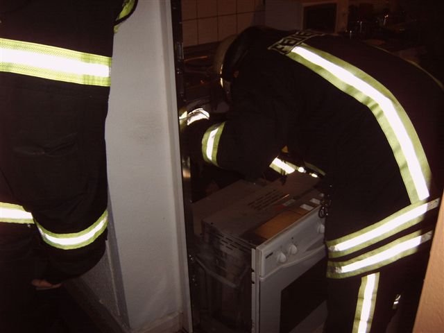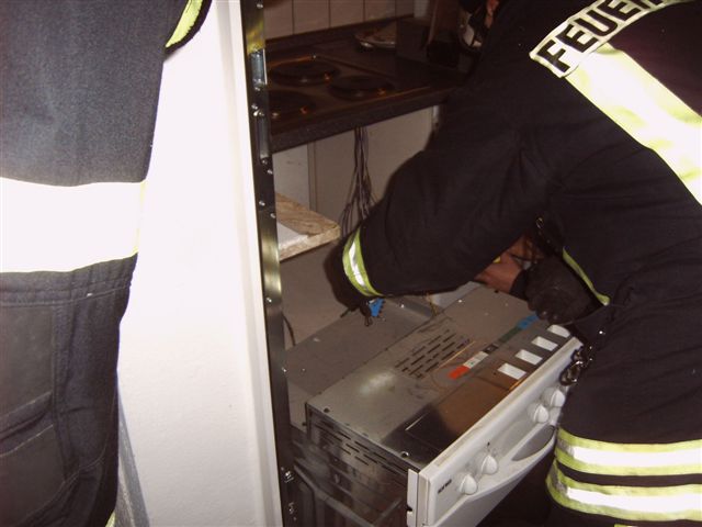 Der Einsatzzentrale wurde ein Ofenbrand in einer Küche gemeldet. Die zuerst eintreffende LG Letmathe stellte fest, dass der Ofen bereits vom Wohnungsinhaber mit Wasser abgelöscht war. Die Wohnung war leicht verraucht und wurde quer gelüftet. Der Ofen wurde spannungsfrei geschaltet, aus der Küchenzeile ausgebaut und ins Freie gebracht. Die Einsatzkräfte der Berufsfeuerwehr konnten sofort wieder einrücken.