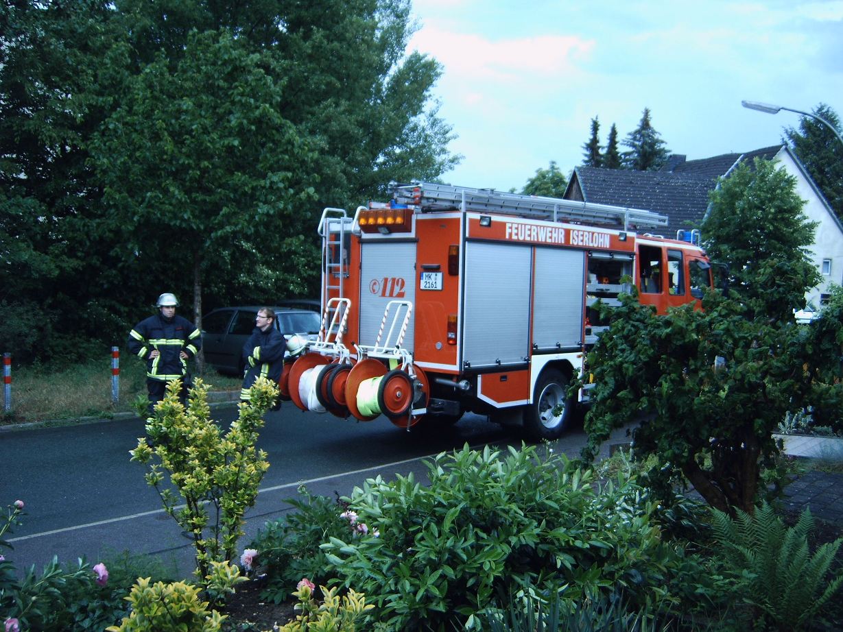 Das LF 16 der Löschgruppe Letmathe wurde zu einem Wassereinbruch alarmiert. Durch einen starken Regenschauer wurde das Wasser durch die Kanalisation zurückgedrückt. Der Keller stand ca. 5 cm unter Wasser. Durch säubern des Revisionsschachtes und mit hilfe von Gummiflitschen konnte das Wasser wieder ablaufen.