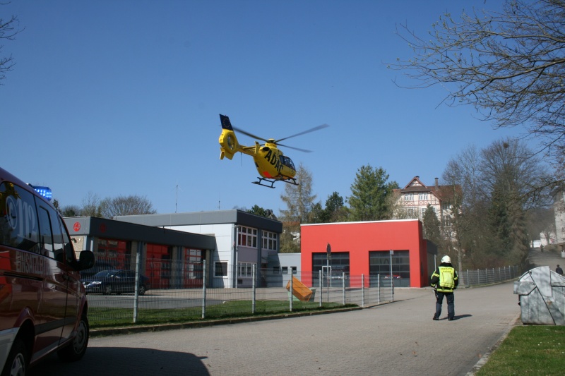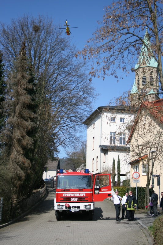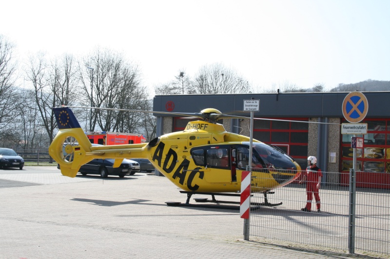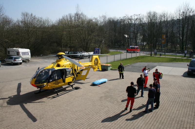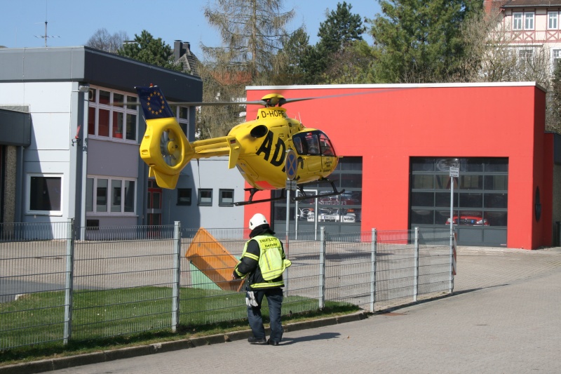 Für den Transport in eine Unfallklinik wurde ein Rettungshubschrauber angefordert. Der Hubschrauber "Christoph 8" aus Lünen landete auf dem Hof des Feuerwehrgerätehauses am Lennedamm. Der Landeplatz wurde von den Kameraden der Löschgruppe gesichert.