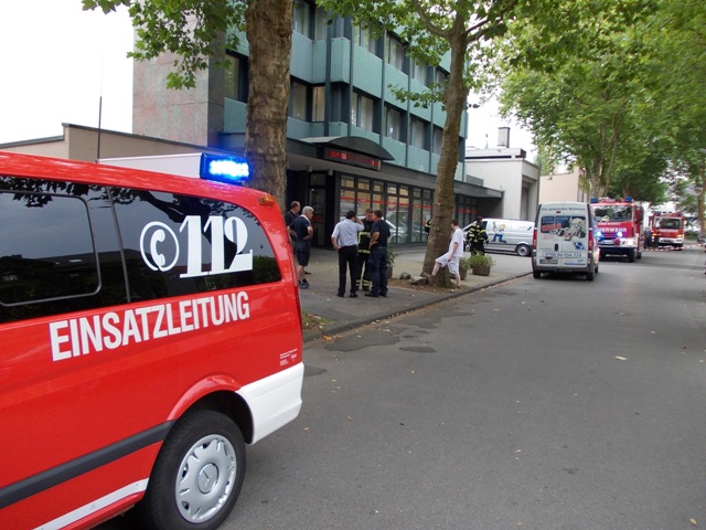 Im Gebäude der Sparkasse war am Aggregat der Klimaanlage eine Leitung geplatzt. Der Kellerraum wurde durch austretende Kühlmittel vernebelt. Mittels Überdrucklüfter und von einer Fachfirma mittels Sauglutten wurde der Kellerraum be - entlüftet. Die Löschgruppe Letmathe löste die Kräfte der Berufsfeuerwehr aus dem Einsatz aus und führte die Lüftungsarbeiten weiter.