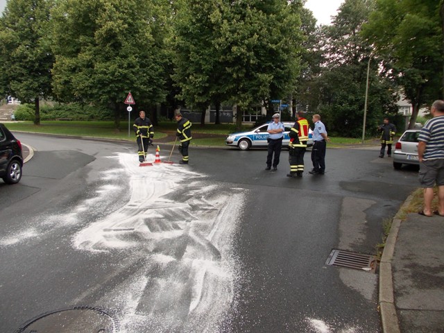 Das LF 16 der Löschgruppe Letmathe wurde zur Oelspur im Kreuzungsbereich im Nordfeld und Schattweg alarmiert. Dort wurde im eine Oelspur mit Oelbindemittel abgestreut und Warnschilder aufgestellt.