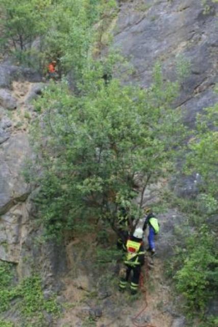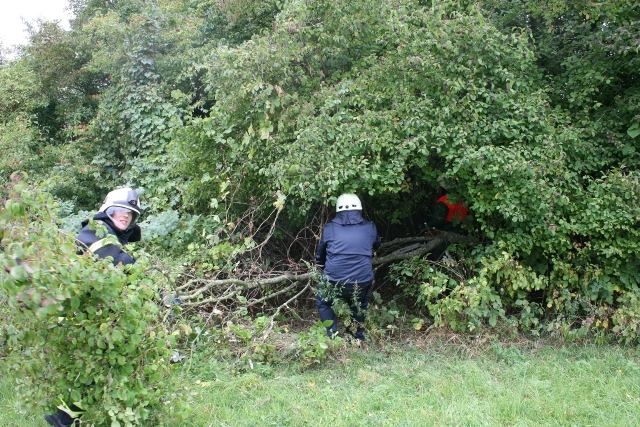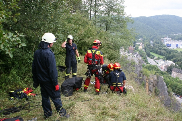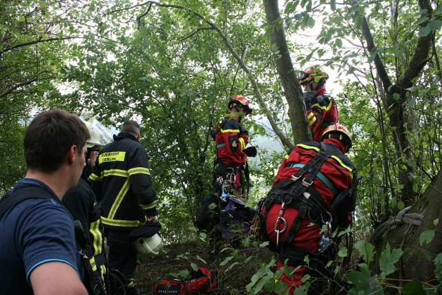 Zum laufenden Einsatz der Berufsfeuerwehr Iserlohn und den Höhenrettungskräften der BF Dortmund zur Rettung der Kinder aus der Steilwand wurde das Letmather HLF zur Unterstützung angefordert. Das HLF der Löschgruppe Letmathe fuhr die Einsatzstelle oberhalb über den Burgberg an. Dort musste ein Zugang zur Abbruchkante geschaffen werden. Mit der Motorkettensäge wurden an zwei Stellen mehrere Äste und Büsche entfernt um Anschlagspunkte für die Höhenretter zu schaffen. Alle Kinder konnten unversehrt gerettet werden und wurden dem Rettungsdienst übergeben.