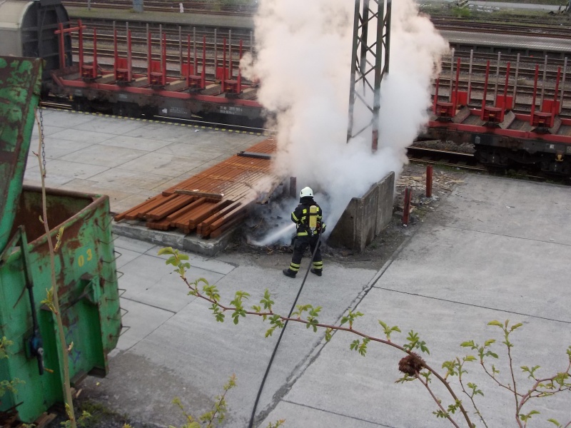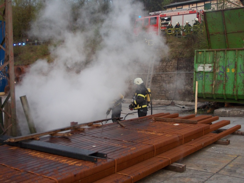 Auf dem Bahnhofsgelände, an der Bergstraße brannte Unrat. Das Feuer wurde mit der Schnellangriffseinrichtung des Löschfahrzeugs abgelöscht und mit Harken auseinandergezogen.