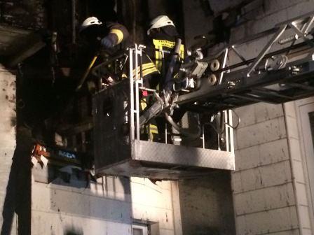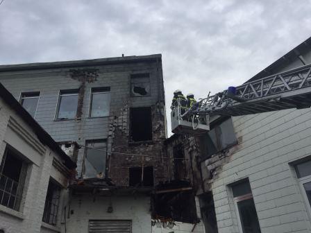 Dort wurden mit Hilfe einer Wärmebildkamera, Einreißhaken und Kettensäge Glutnester und aufflammende Materialien über die DLK aufgespürt und abgelöscht.