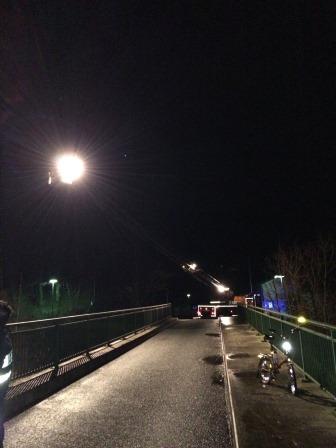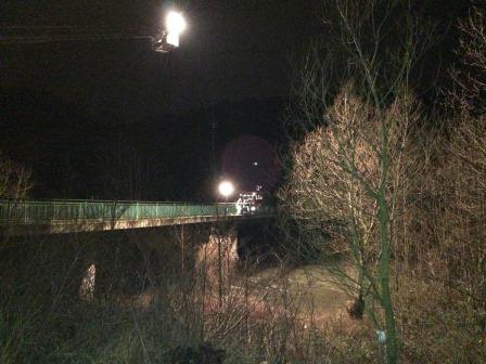 Die EinsatzkrĂ€fte besetzten die BrĂŒcken in FlieĂrichtung Hagen, um von dort das GewĂ€sser und die Uferbereiche auszuleuchten und abzusuchen. Das Rettungsboot der Feuerwehr konnte ĂŒber eine östlich der neuen Lennepromenade angelegten, so genannten Slipanlage, zu Wasser gelassen werden. Die EinsatzkrĂ€fte konnten somit von der Wasserseite aus die Uferbereiche mit einer WĂ€rmebildkamera absuchen, machten dabei aber keine Feststellung. Auf Grund der hohen Strömungsgeschwindigkeit der Lenne war das Befahren mit dem Boot nicht in allen Bereichen durchgĂ€ngig möglich. Dort kamen im Anschluss die Rettungshunde der Sondereinheit Rettungshunde- Ortungstechnik zum Einsatz. Die Hunde suchten weite Teile des Uferbereiches ab, konnten aber auch dort keine Person ausfindig machen.