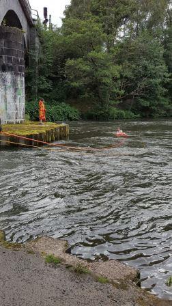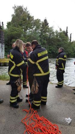 Anrufer meldeten mehrere Jugendliche in einer Notlage in der Lenne im Bereich âAn Pater und Nonneâ. Drei Jugendliche sind zum Schwimmen in die Lenne gestiegen. Aufgrund der starken Strömung kamen sie in Not. Zwei Personen konnten sich Landseitig retten, ein MĂ€dchen rettete sich auf einem Podest eines BrĂŒckenpfeilers in der Mitte der Lenne. Da der Wasserstand fĂŒr das Rettungsboot der Feuerwehr an der Anlegestelle zu niedrig war, wurde die Person durch einen Feuerwehrmann gerettet, der sich gesichert durch eine Sicherungsleine und mit einem Rettungsring durch die Lenne zum MĂ€dchen aufmachte. Beide wurden anschlieĂend zur Landseite gezogen. Verletzt wurde niemand. Im Einsatz waren die Berufsfeuerwehr, der Rettungsdienst, die Löschgruppen Letmathe, StĂŒbbeken und Oestrich der Freiwilligen Feuerwehr. Wie immer bei EinsĂ€tzen auf der Lenne, standen auch EinsatzkrĂ€fte der Feuerwehr Hagen auf Hagener Gebiet an der Lenne fĂŒr einen Einsatz bereit.