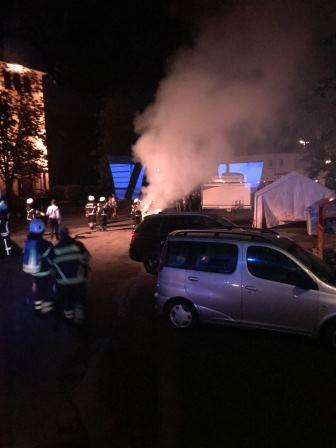 Die Meldung, dass das Feuer auf ein Festzelt überzugreifen drohte, bestätigte sich nicht.