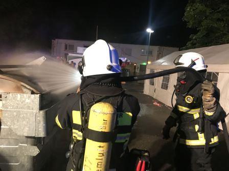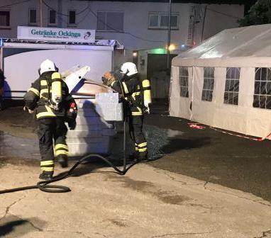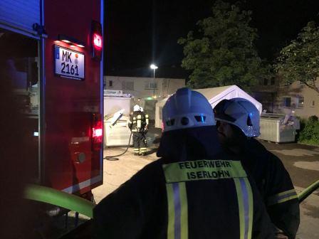 Iserlohn Stübbeken - Am Dorfplatz - F0 Containerbrand droht auf Festzelt überzugreifen
