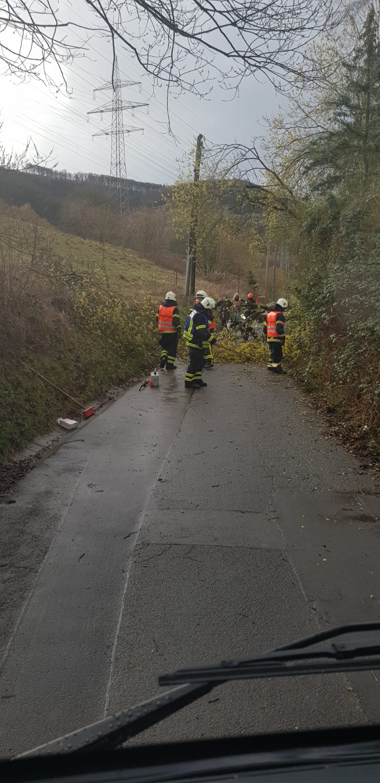 Auch hier wurde mittels Kettensäge der Baum zerkleinert und am Straßenrand abgelegt. Die Straße wurde anschließend gereinigt.