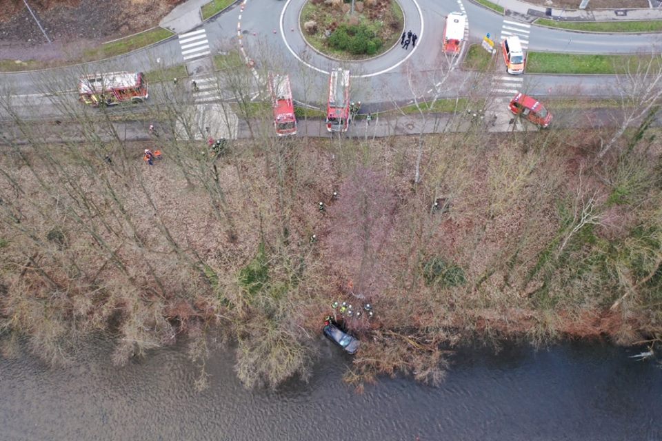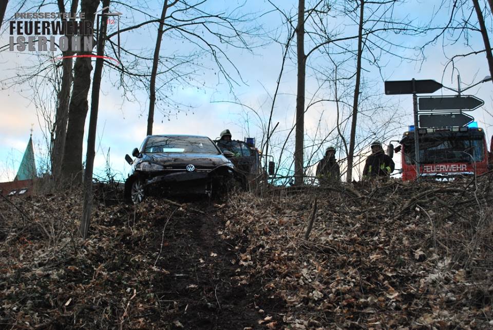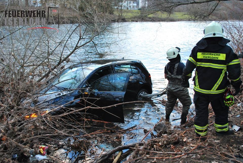 Am Kreisverkehr Lennedamm hat heute Nachmittag gegen 16:30 Uhr der Fahrer eines PKW die Kontrolle über sein Fahrzeug verloren und ist eine steile Böschung hinabgefahren. Erst das Flussbett der Lenne stoppte die Unfallfahrt. Der Fahrer erlitt hierbei schwere Verletzungen und musste von den Einsatzkräften der Feuerwehr aus seinem Fahrzeug befreit werden. Der Fahrer wurde vor Ort vom Rettungsdienst versorgt und im Anschluss in ein Krankenhaus nach Hagen transportiert. Zur Bergung des Unfallwagens setzte die Feuerwehr zwei Seilwinden ein. An dem Einsatz waren rund 35 Einsatzkräfte der Feuerwehr Iserlohn beteiligt. Zum genauen Unfallhergang sowie zur Schadenshöhe können derzeit keine Angaben gemacht werden. Für die Dauer des Einsatzes war der Kreisverkehr am Lennedamm komplett gesperrt worden, was zu größeren Behinderungen im Feierabendverkehr führte.