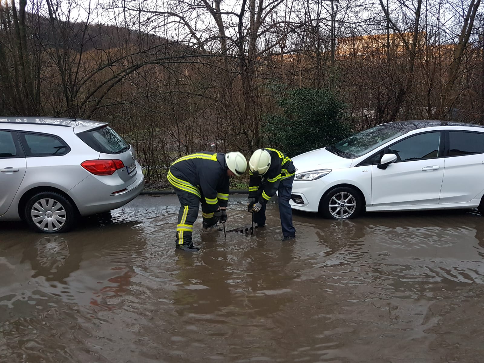 Anwohner meldeten, dass Bereiche der Königsberger Str. unter Wasser standen. Im überschwemmten Bereich wurden die Abläufe gereinigt, sodass das Wasser wieder ablaufen konnte.