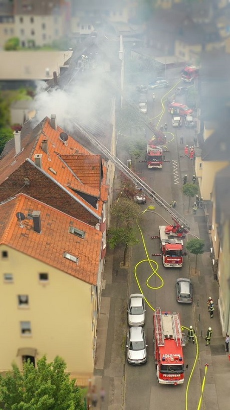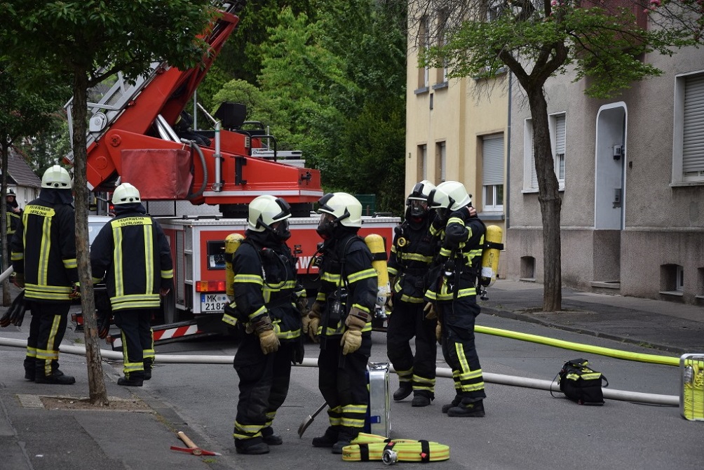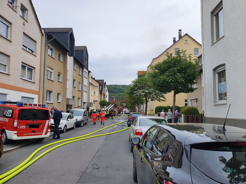 Um 13:30 Uhr alarmierten Anwohner der Straße „Im Oberdorf“ die Feuerwehr Iserlohn über einen Dachstuhlbrand. Hierzu wurden die Löschgruppen Letmathe und Stübbeken, sowie der Löschzug der Berufsfeuerwehr alarmiert. Der Fahrzeugführer des HLF der Löschgruppe Letmathe erhöhte bereits auf der Anfahrt zur Einsatzstelle das Einsatzstichwort von Feuer 1 auf Feuer 2 (Zugalarm FF) aufgrund der enormen Rauchentwicklung. An der Einsatzstelle eingetroffen wurde durch den Fahrzeugführer Erkundungsmaßnahmen vorgenommen. Diese ergaben, dass der Dachstuhl bereits in voller Ausdehnung brannte. Da nicht auszuschließen war, dass sich noch Bewohner in dem Gebäude aufhielten, wurde durch die Löschgruppe Letmathe im Erstangriff ein Trupp unter Atemschutz zur Menschenrettung und Brandbekämpfung im Innenangriff vorgenommen und ein Löschangriff über die Drehleiter vorbereitet. Es wurden 2 Einsatzabschnitte mit den Nachrückenden Kräften der Berufsfeuerwehr und den Löschgruppen Stübbeken und Oestrich gebildet. Im Einsatzverlauf kamen 2 Wenderohre über die Drehleitern der Berufsfeuerwehr und Löschgruppe Letmathe und 2 Trupps im Innenangriff zum Einsatz. Durch das schnelle Eingreifen konnte eine Ausbreitung auf das angrenzende Wohngebäude verhindert werden. Die Löschgruppe Letmathe verblieb bis 18:45 Uhr als Brandwache an der Einsatzstelle und führte Nachlöscharbeiten durch. Das Wohnhaus gilt zurzeit als unbewohnbar. Die Bewohner wurden anderweitig untergebracht. Die Brandursache wird durch die Polizei ermittelt.