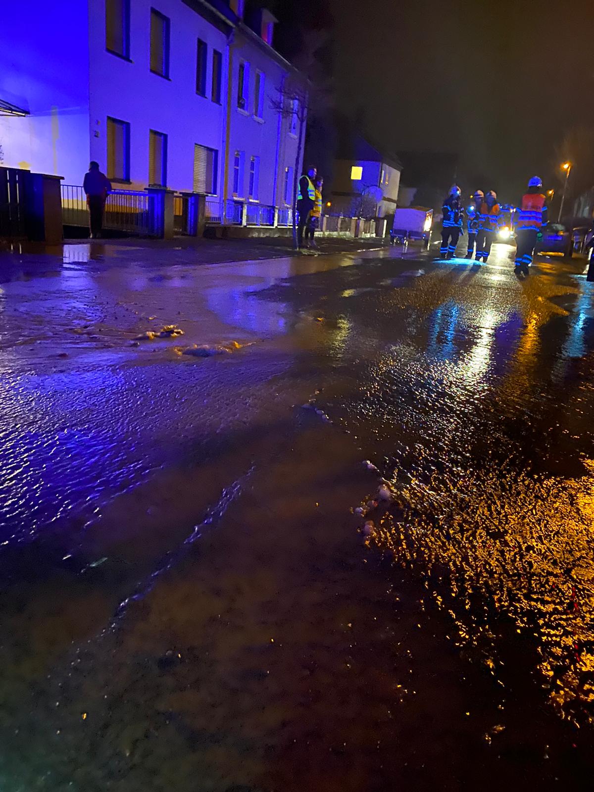 Noch während der Rückfahrt zum Gerätehaus wurde das HLF durch die Einsatzzentrale zur Kühlingstraße alarmiert. Ein Wasserrohrbruch hatte die Straße unterspült. Die Einsatzstelle wurde für den Verkehr gesperrt. Die umliegenden Häuser wurden durch die Einsatzkräfte begangen, um sicher zu stellen, dass kein Wasser in den Keller gelaufen war.