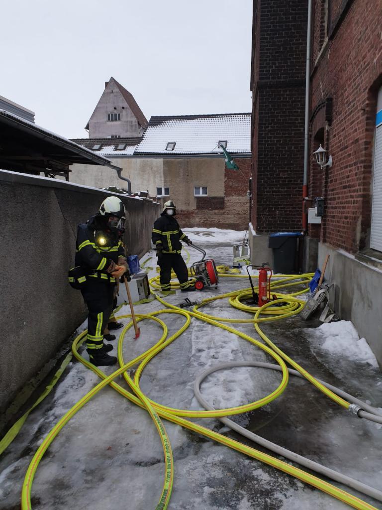 Das Feuer im Hausflur konnte zügig mit einem C-Rohr gelöscht werden.
