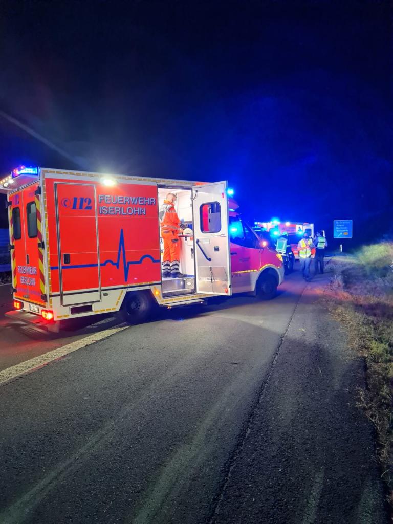 RW BF, ELW, LG Oestrich, RTW Iserlohn, RTW Iserlohn, NEF Iserlohn, BAB Polizei